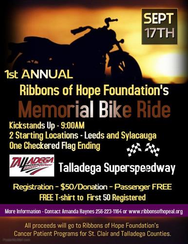 This Ribbons of Hope Foundation event will benefit Patient Programs in both Talladega County and St. Clair County.