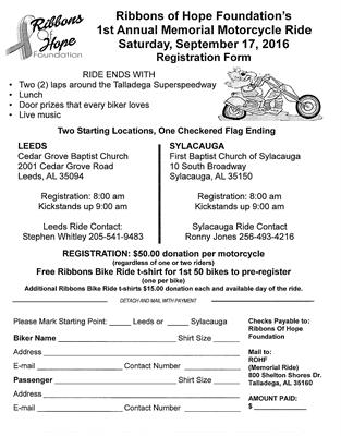1st Annual Ribbons of Hope Memorial Motorcycle Ride